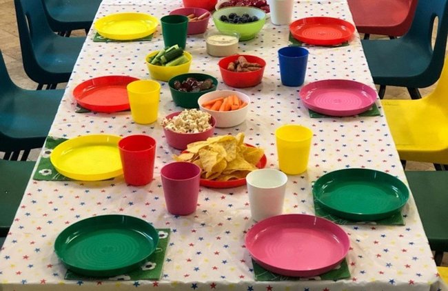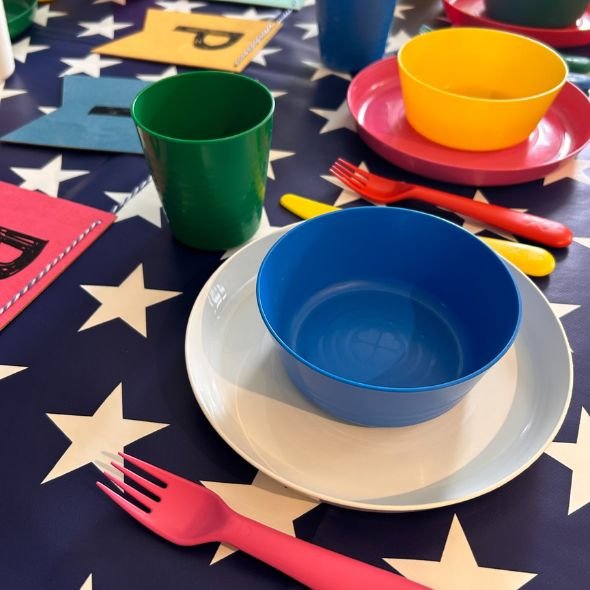 To save 40 paper cups and plates from heading to the bin I searched the Party Kit Network and booked a kit from a local host for a small fee (about the same as buying enough disposable items). The kit came with plates, bowls, cups, jugs and trays. Everything needed for a buffet or picnic style party meal. Some kits also come with additional items such as bunting, party games and tablecloths. The kit I hired also had a £5 washing up option so that you could return it dirty if you wished. Adults were also encouraged to bring their reusable cups if they wanted to use the on-site café.